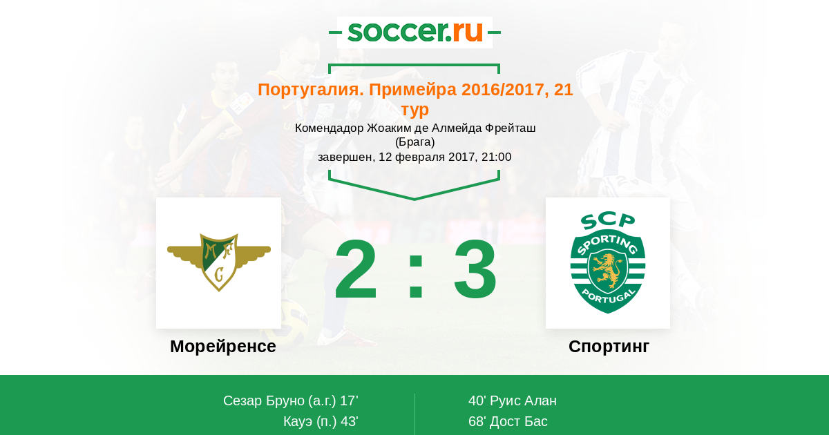 Португалия. Примейра 27.02.2018 Спортинг Логотип футбольный клуб Спортинг (Лиссабон) 1:0 Логотип футбольный клуб Морейренcе (Морейра-де-Конегуш) Морейренcе