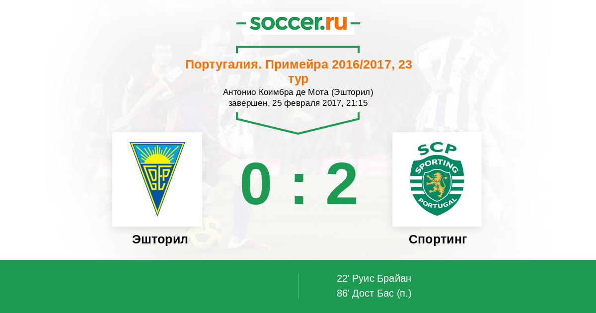 Португалия. Примейра 23.09.2016 Спортинг Логотип футбольный клуб Спортинг (Лиссабон) 4:2 Логотип футбольный клуб Эшторил Эшторил