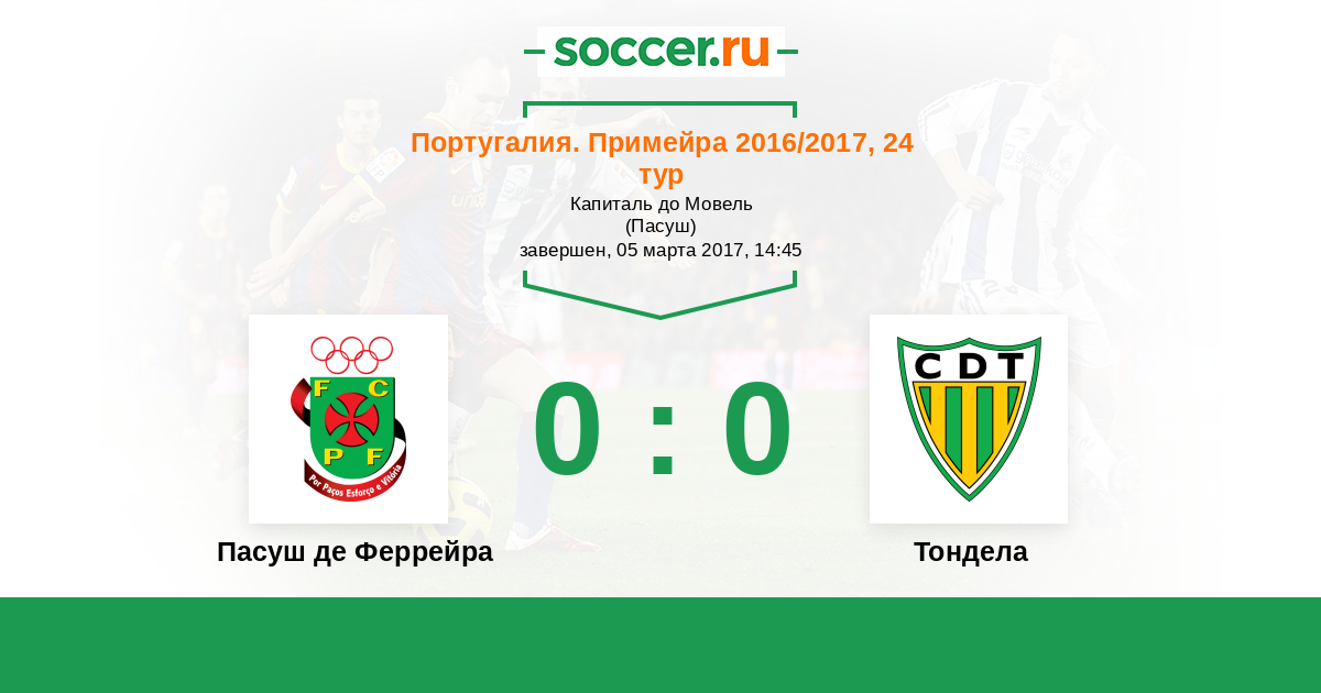 Португалия. Примейра 06.05.2016 Пасуш де Феррейра Логотип футбольный клуб Пасуш де Феррейра 1:4 Логотип футбольный клуб Тондела Тондела
