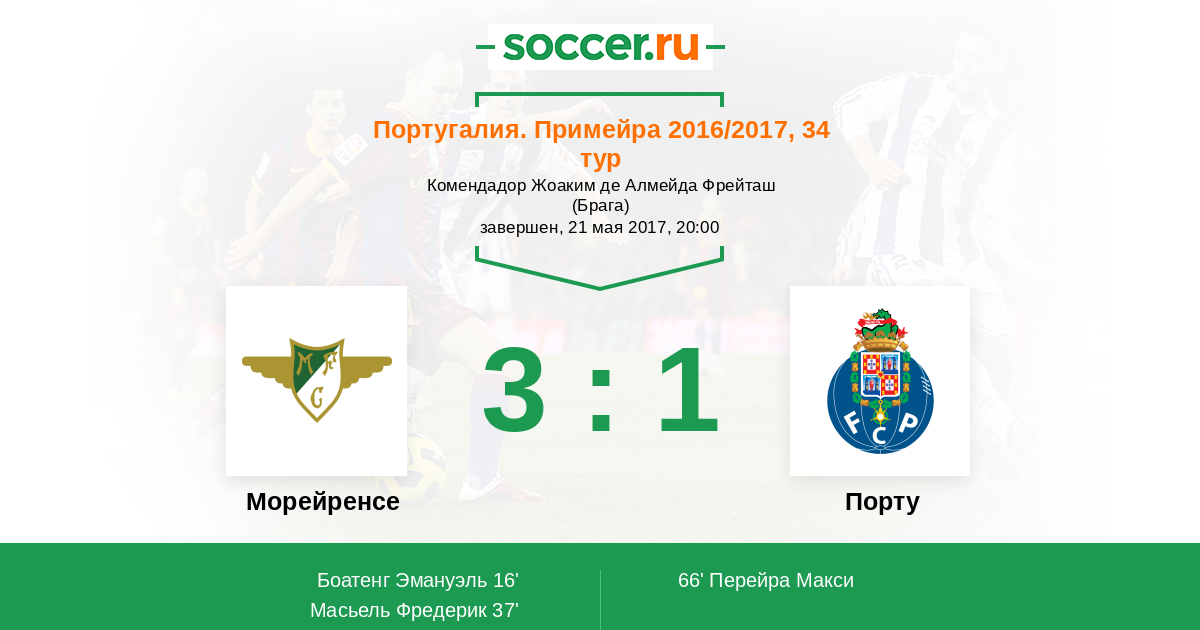 Португалия. Примейра 15.01.2017 Порту Логотип футбольный клуб Порту 3:0 Логотип футбольный клуб Морейренcе (Морейра-де-Конегуш) Морейренcе