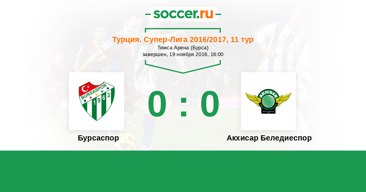 Турция. Суперлига 17.04.2016 Бурсаспор Логотип футбольный клуб Бурсаспор 0:2 Логотип футбольный клуб Акхисар Беледиеспор Акхисар Беледиеспор