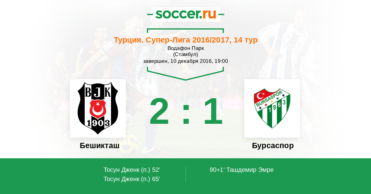 Турция. Суперлига 11.04.2016 Бешикташ Логотип футбольный клуб Бешикташ (Стамбул) 3:2 Логотип футбольный клуб Бурсаспор Бурсаспор