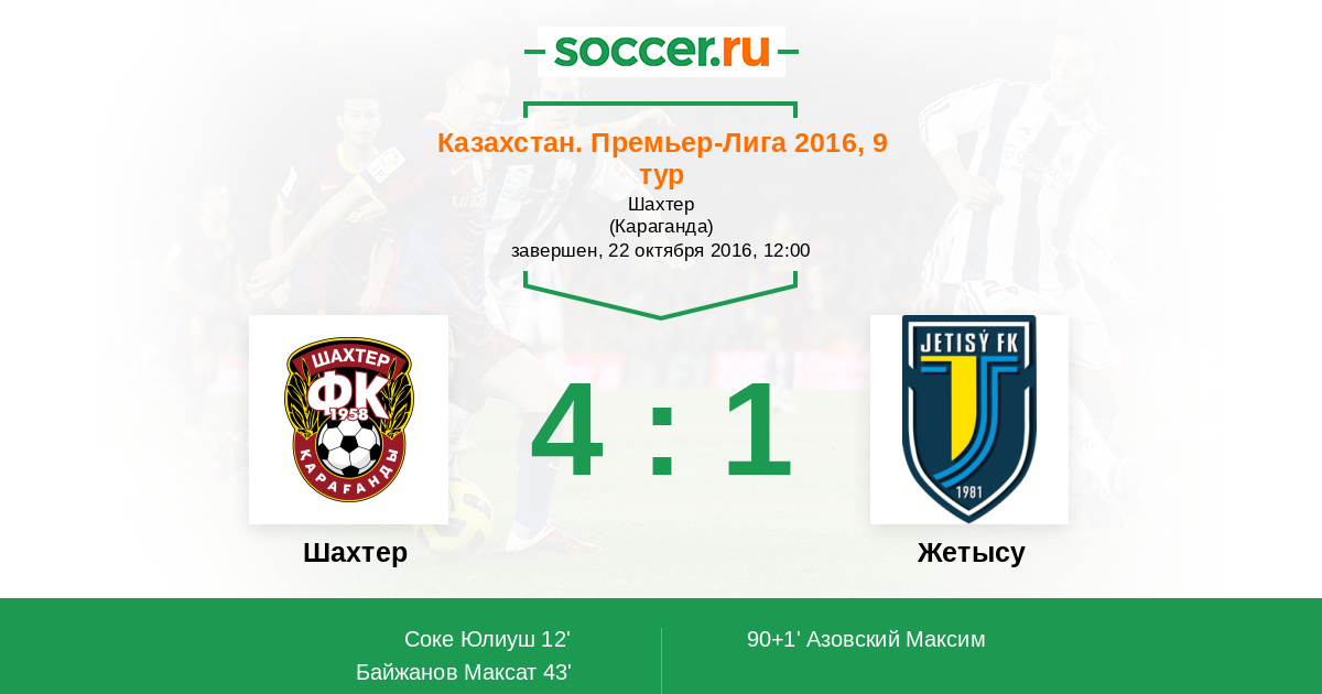 Казахстан. Премьер-лига 18.09.2016 Жетысу Логотип футбольный клуб Жетысу (Талдыкорган) 1:2 Логотип футбольный клуб Шахтер (Караганда) Шахтер
