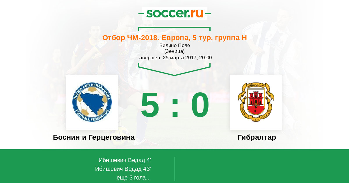 Босния и Герцеговина 4:0 0:0 4:0