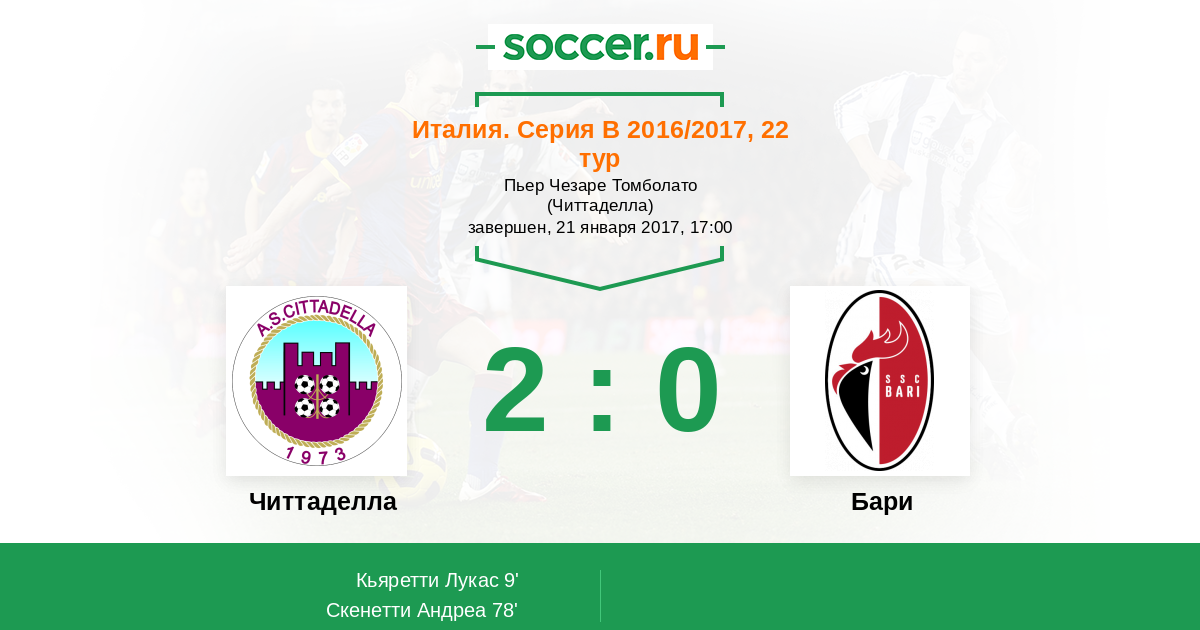 Матчи Италия. Серия B 2016/2017