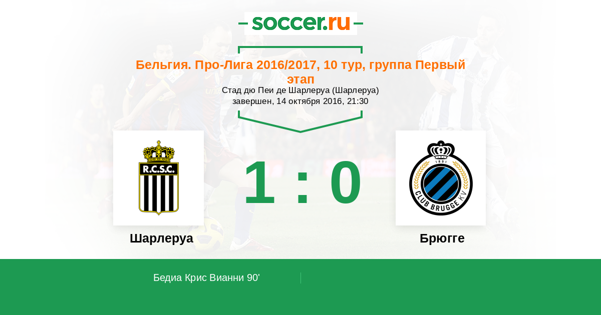Бельгия. Про-Лига 08.04.2017 Брюгге Логотип футбольный клуб Брюгге 1:1 Логотип футбольный клуб Шарлеруа Шарлеруа