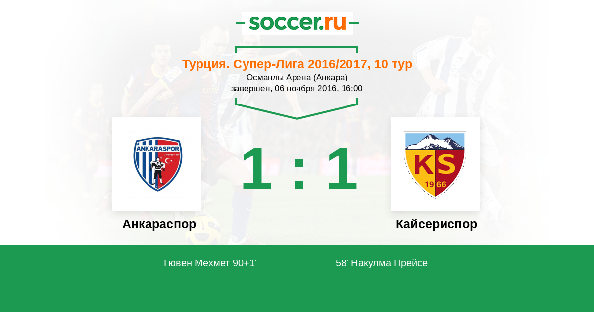 Турция. Суперлига 03.11.2006 Анкараспор Логотип футбольный клуб Анкараспор 1:1 Логотип футбольный клуб Кайсериспор Кайсериспор