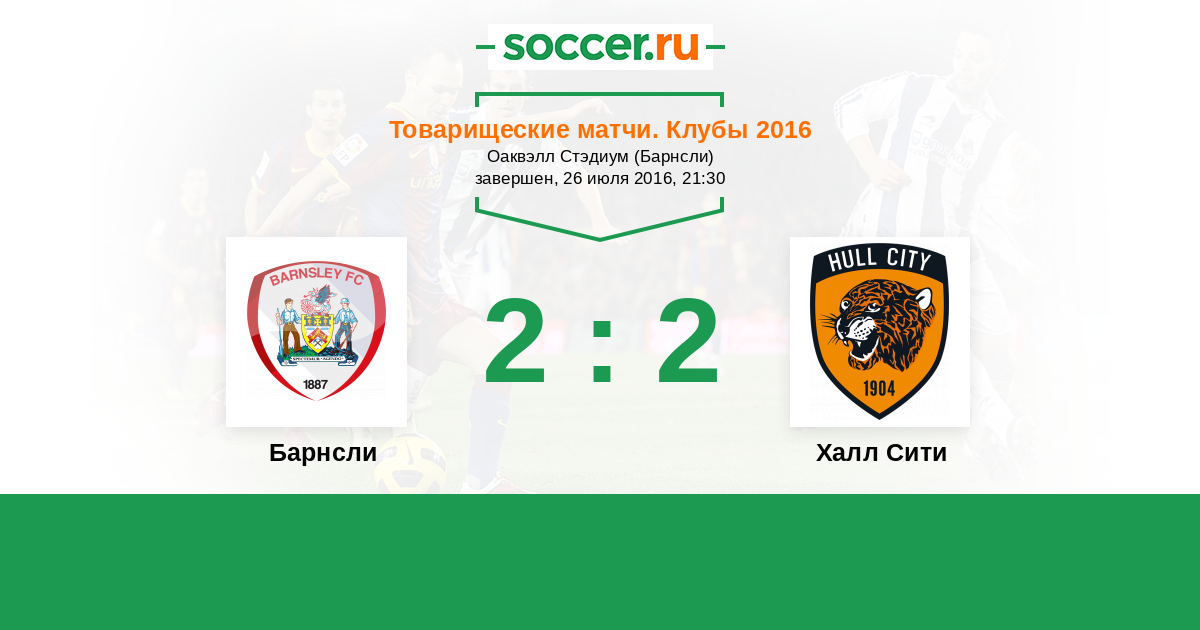 Товарищеские матчи. Клубы 26.07.2014 Барнсли Логотип футбольный клуб Барнсли 1:1 Логотип футбольный клуб Халл Сити (Кингстон-апон-Халл) Халл Сити