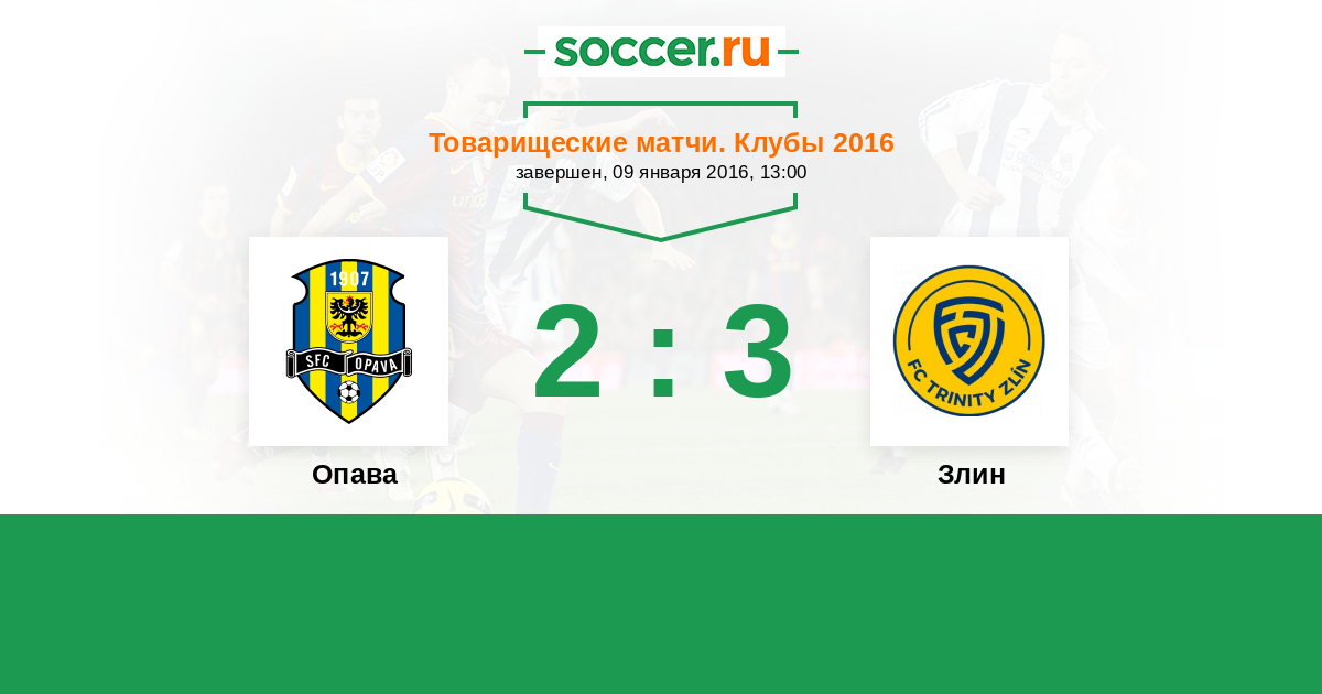 Товарищеские матчи. Клубы 14.01.2017 Злин Логотип футбольный клуб Злин 3:0 Логотип футбольный клуб Опава Опава