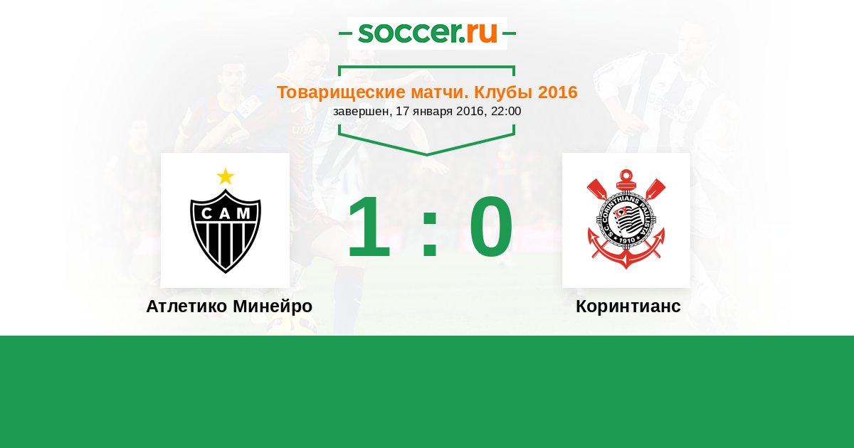 Бразилия. Серия А 06.10.2016 Коринтианс Логотип футбольный клуб Коринтианс (Сан-Паулу) 0:0 Логотип футбольный клуб Атлетико Минейро (Белу-Оризонти) Атлетико Минейро