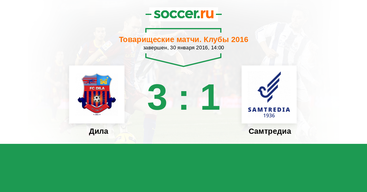Грузия. Высшая лига 19.11.2016 Самтредиа Логотип футбольный клуб Самтредиа 0:2 Логотип футбольный клуб Дила (Гори) Дила