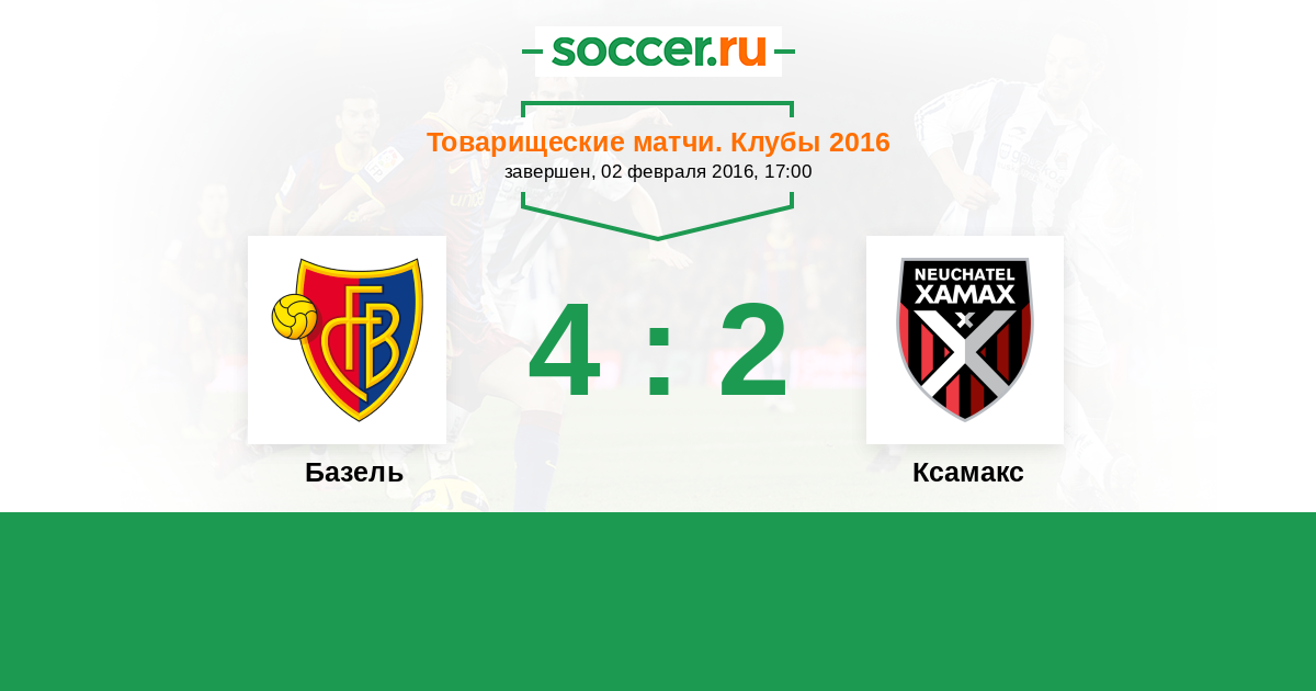 Швейцария. Суперлига 14.02.2010 Ксамакс Логотип футбольный клуб Ксамакс (Невшатель) 1:3 Логотип футбольный клуб Базель Базель