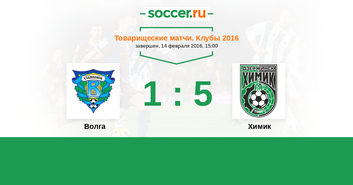 Россия. Вторая лига. Группа 4 20.04.2016 Волга Логотип футбольный клуб Волга (Ульяновск) 3:0 Логотип футбольный клуб Химик (Дзержинск) Химик