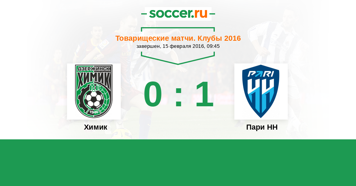 Россия. Вторая лига. Группа 4 14.04.2016 Химик Логотип футбольный клуб Химик (Дзержинск) 0:3 Логотип футбольный клуб Волга-Олимпиец (Нижний Новгород) Волга-Олимпиец
