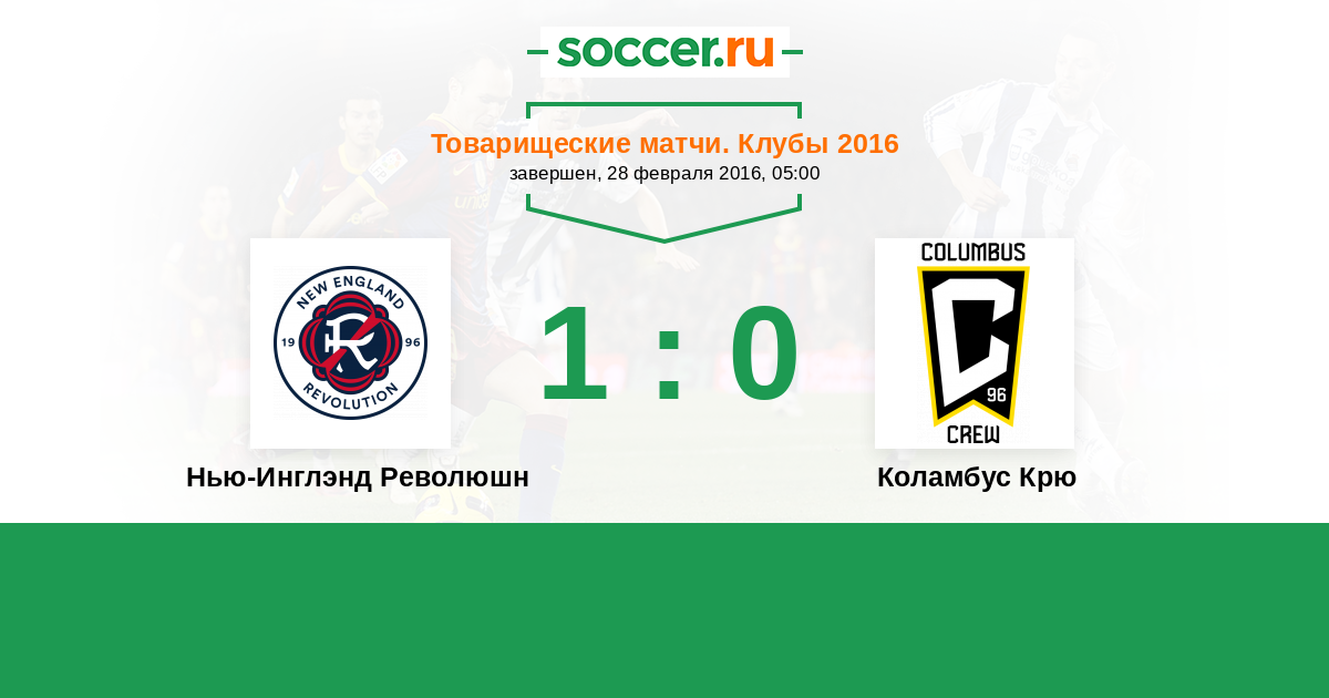 США. МЛС 21.08.2016 Нью-Инглэнд Революшн Логотип футбольный клуб Нью-Инглэнд Революшн (Фоксборо) 0:2 Логотип футбольный клуб Коламбус Крю Коламбус Крю