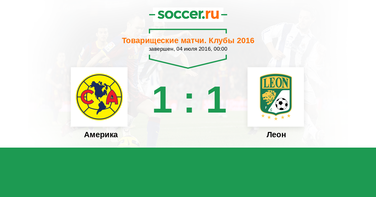 Мексика. Примера-Дивизион 28.07.2019 Леон Логотип футбольный клуб Леон 0:0 Логотип футбольный клуб Америка (Мехико) Америка