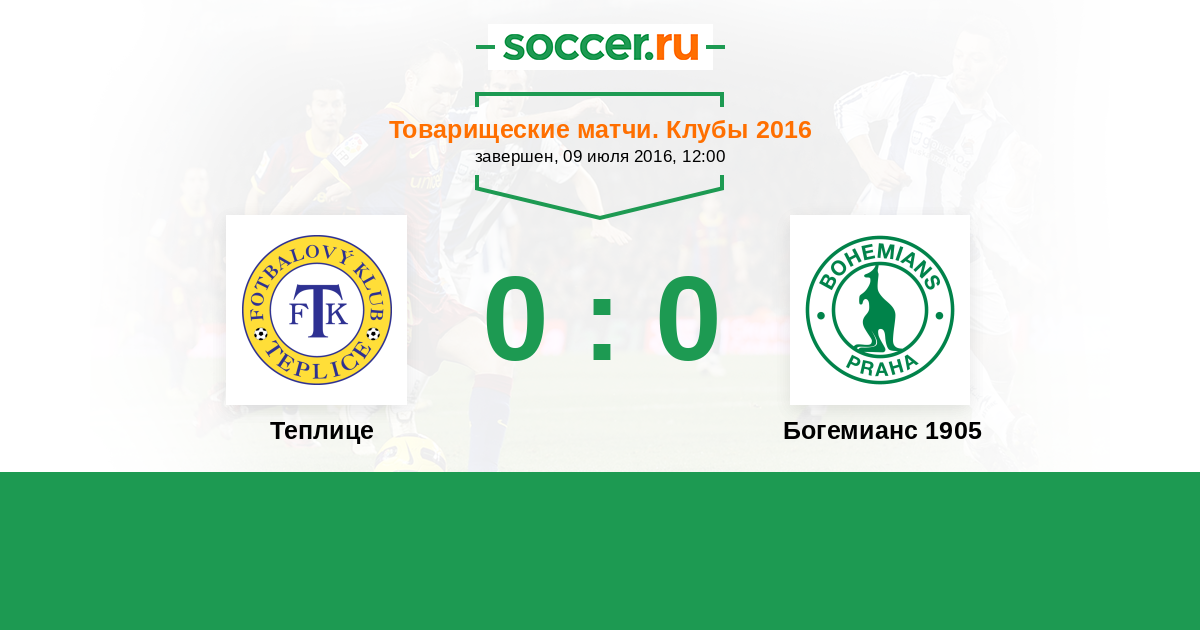 Чехия. Первая Лига 05.03.2016 Богемианс 1905 Логотип футбольный клуб Богемианс 1905 (Прага) 1:1 Логотип футбольный клуб Теплице Теплице