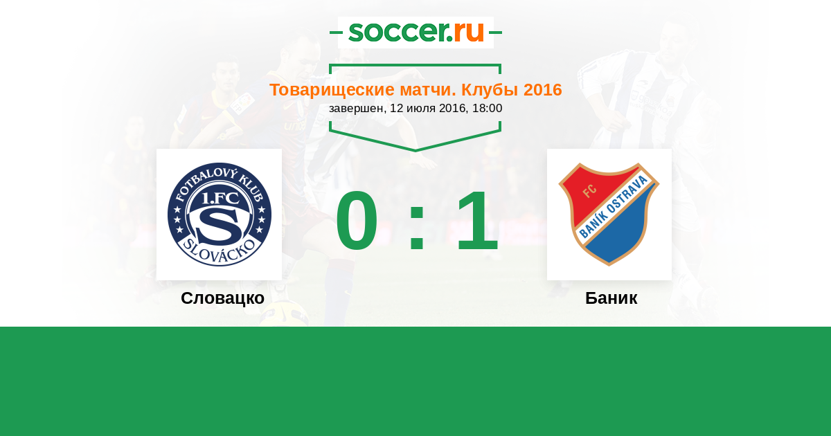 Чехия. Первая Лига 12.08.2017 Словацко Логотип футбольный клуб Словацко (Угерске-Градиште) 5:2 Логотип футбольный клуб Баник (Острава) Баник