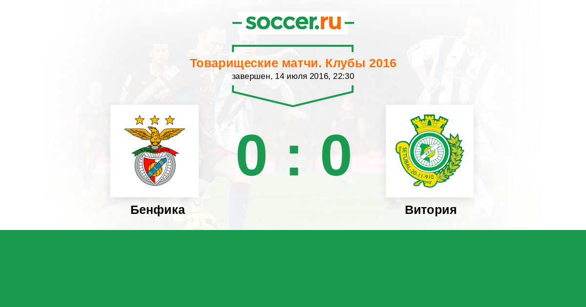 Товарищеские матчи. Клубы 13.07.2018 Витория Логотип футбольный клуб Витория (Сетубал) 1:1 Логотип футбольный клуб Бенфика (Лиссабон) Бенфика