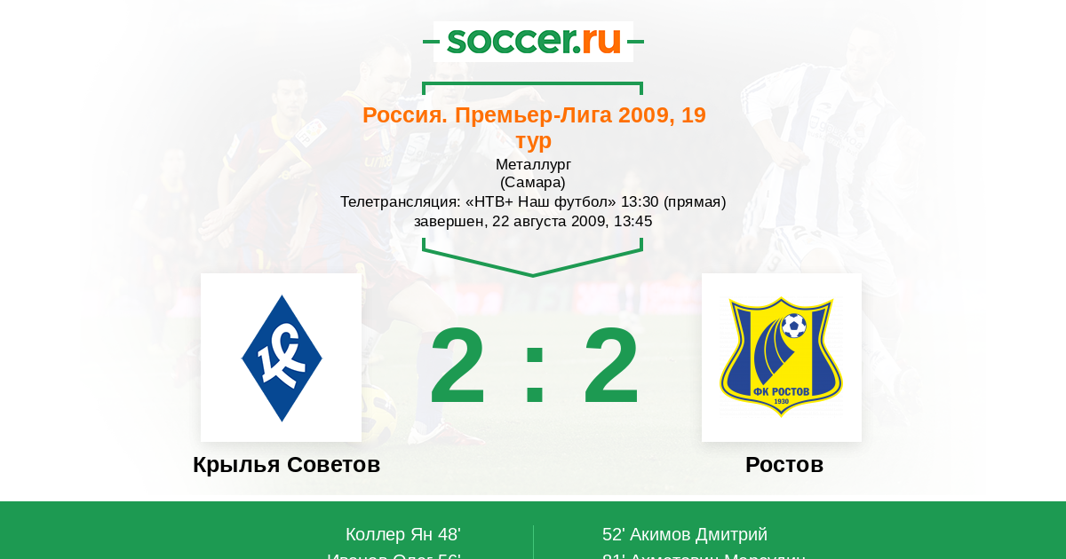 Россия. Премьер-Лига 18.04.2009 Ростов Логотип футбольный клуб Ростов (Ростов-на-Дону) 0:0 Логотип футбольный клуб Крылья Советов (Самара) Крылья Советов
