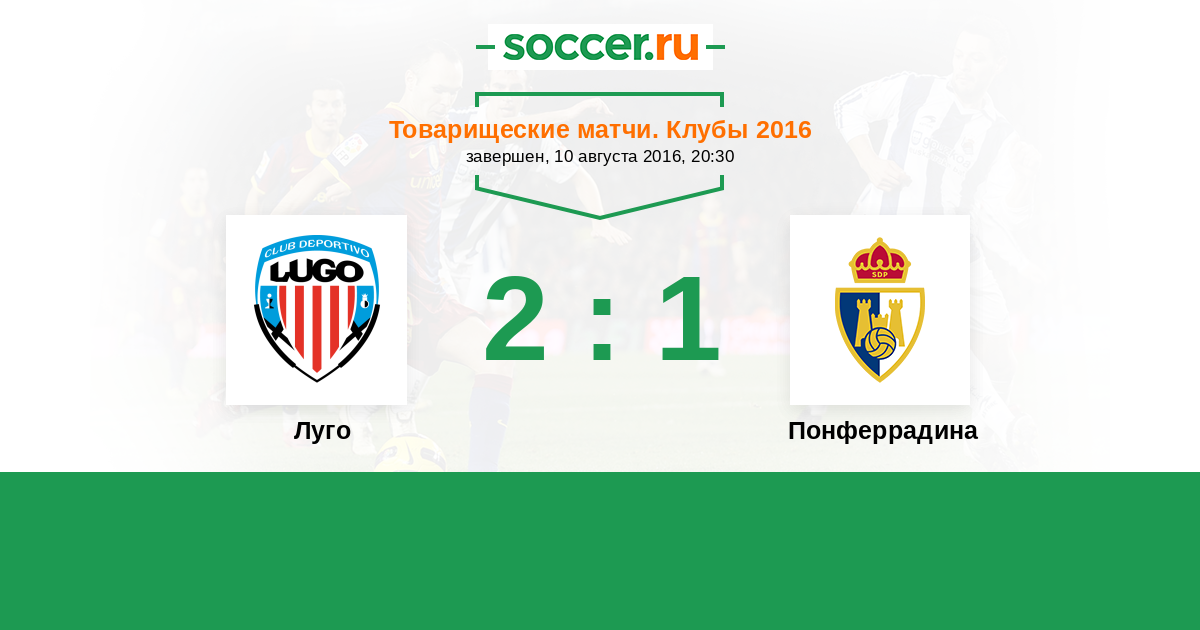 Товарищеские матчи. Клубы 21.07.2021 Луго Логотип футбольный клуб Луго 1:0 Логотип футбольный клуб Понферрадина Понферрадина