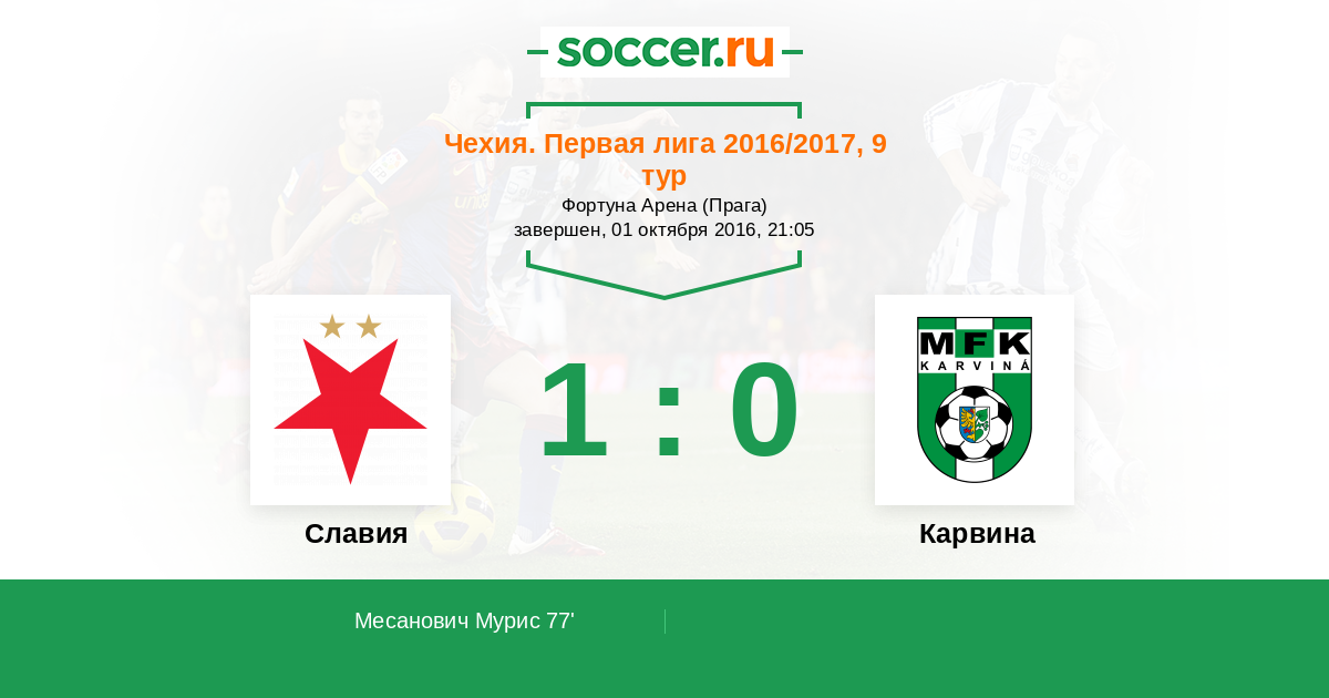Чехия. Кубок 12.04.2017 Славия Логотип футбольный клуб Славия (Прага) 5:2 Логотип футбольный клуб Карвина Карвина