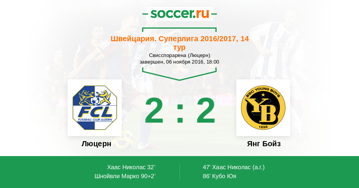 Швейцария. Суперлига 03.12.2014 Люцерн Логотип футбольный клуб Люцерн 1:2 Логотип футбольный клуб Янг Бойз (Берн) Янг Бойз