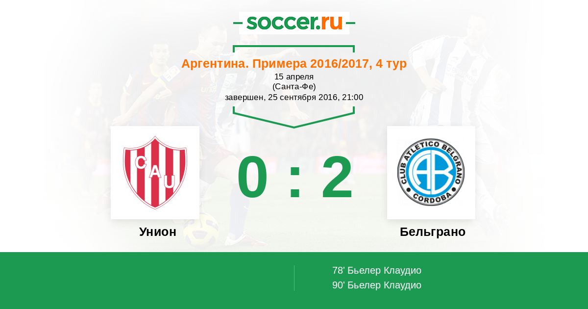 Аргентина. Суперлига 01.12.2017 Унион Логотип футбольный клуб Унион (Санта-Фе) 1:1 Логотип футбольный клуб Бельграно (Кордоба) Бельграно
