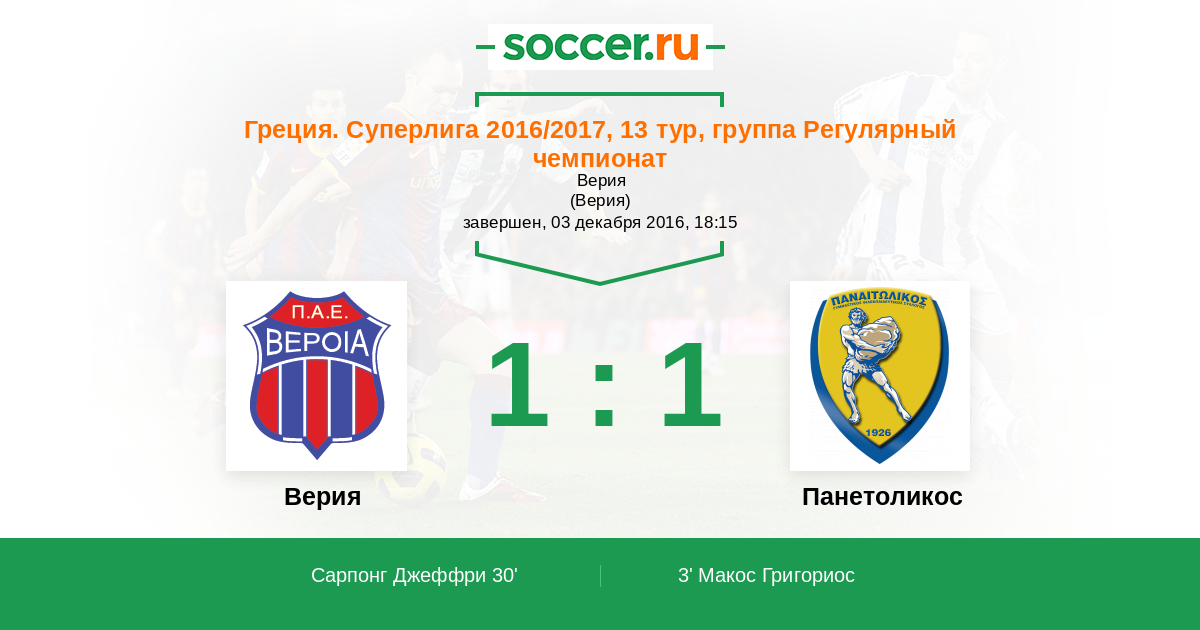 Матчи Греция. Суперлига 2016/2017
