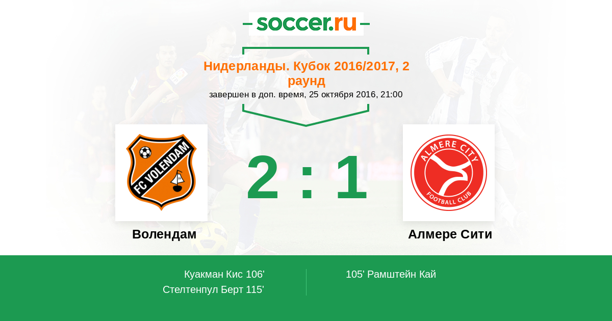 Нидерланды. Первый дивизион 25.09.2015 Волендам Логотип футбольный клуб Волендам 3:1 Логотип футбольный клуб Алмере Сити Алмере Сити