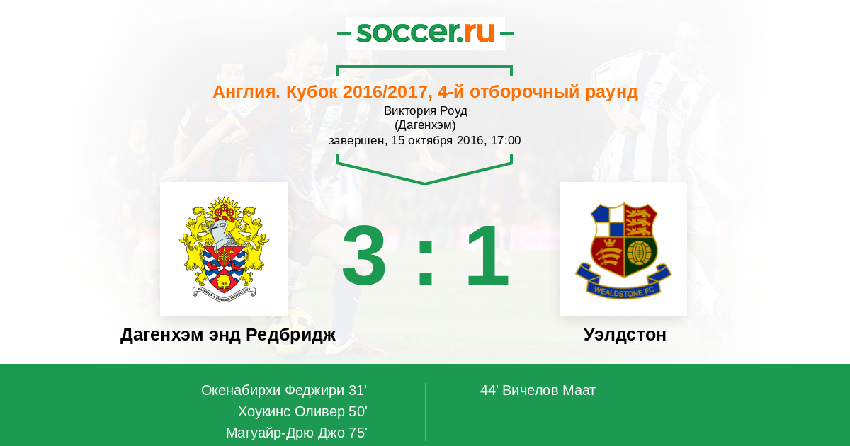 Англия. Кубок 16.10.2021 Уэлдстон Логотип Уэлдстон 1:2 Логотип футбольный клуб Дагенхэм энд Редбридж Дагенхэм энд Редбридж