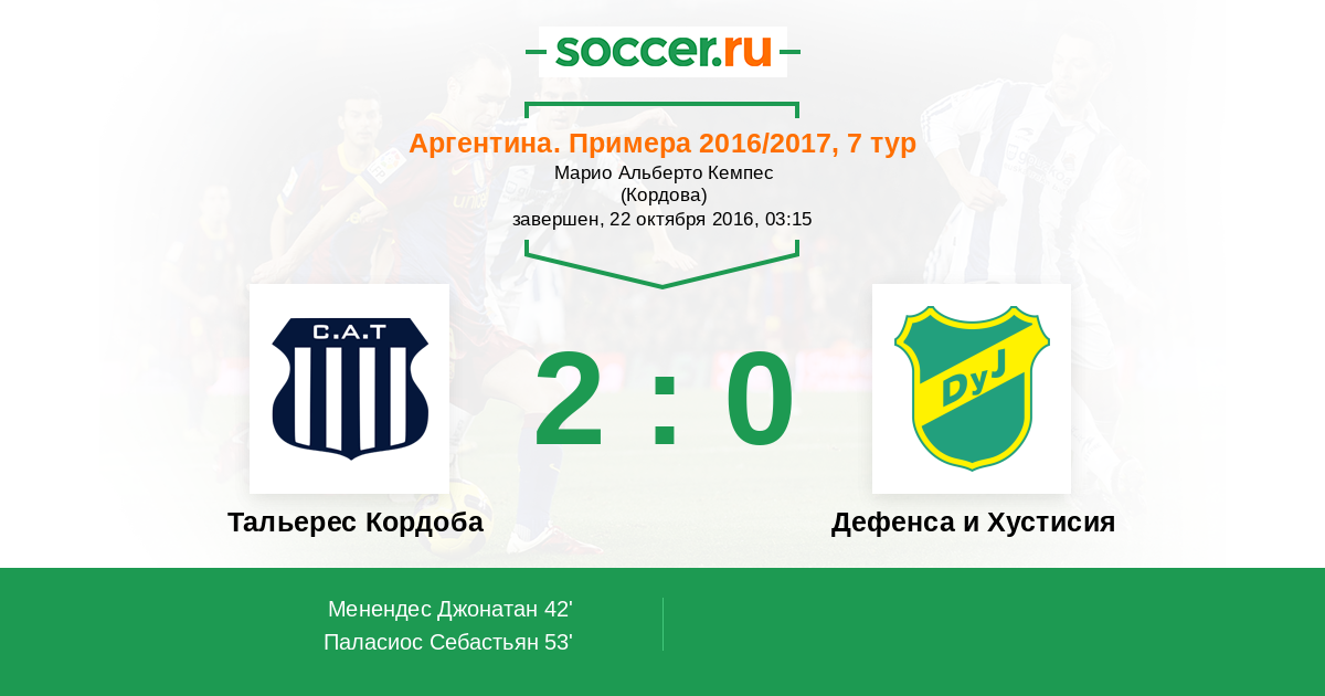 Аргентина. Суперлига 18.03.2018 Тальерес Кордоба Логотип футбольный клуб Тальерес Кордоба 1:0 Логотип футбольный клуб Дефенса и Хустисия (Флоренсио-Варела) Дефенса и Хустисия
