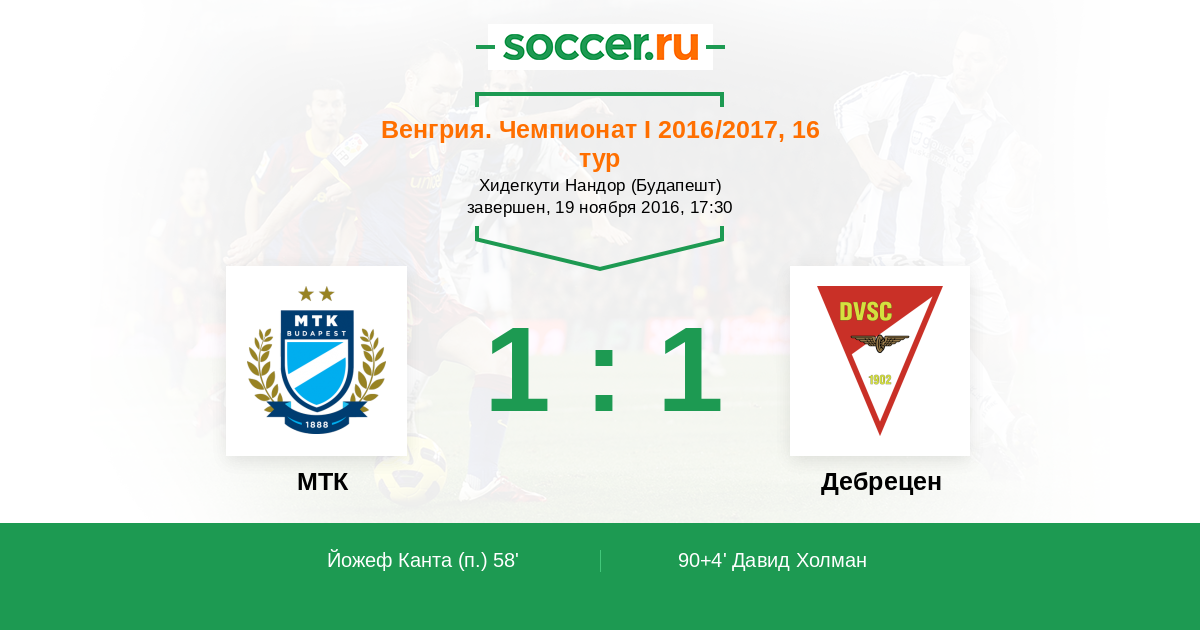 Венгрия. Чемпионат 1 20.03.2016 МТК Логотип футбольный клуб МТК (Будапешт) 1:0 Логотип футбольный клуб Дебрецен Дебрецен