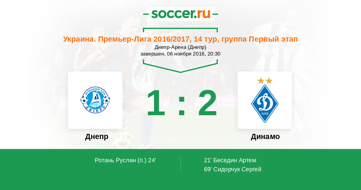 Украина. Премьер-Лига 06.08.2016 Динамо Логотип футбольный клуб Динамо (Киев) 1:0 Логотип футбольный клуб Днепр (Днепропетровск) Днепр