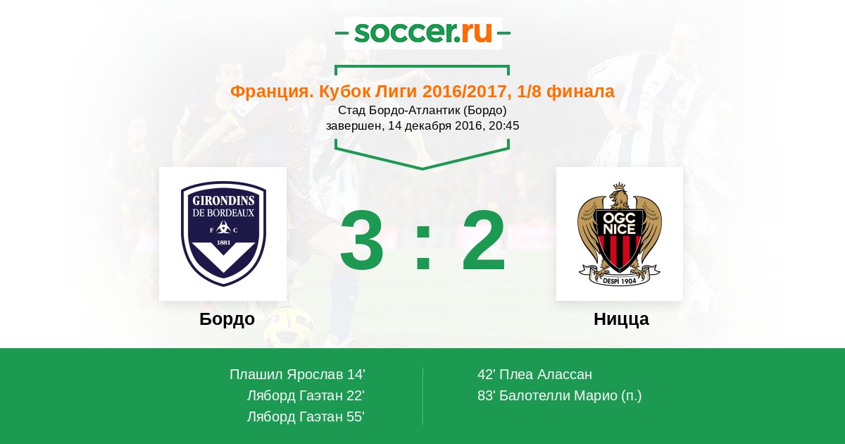 Франция. Лига 1 02.04.2017 Ницца Логотип футбольный клуб Ницца 2:1 Логотип футбольный клуб Бордо Бордо