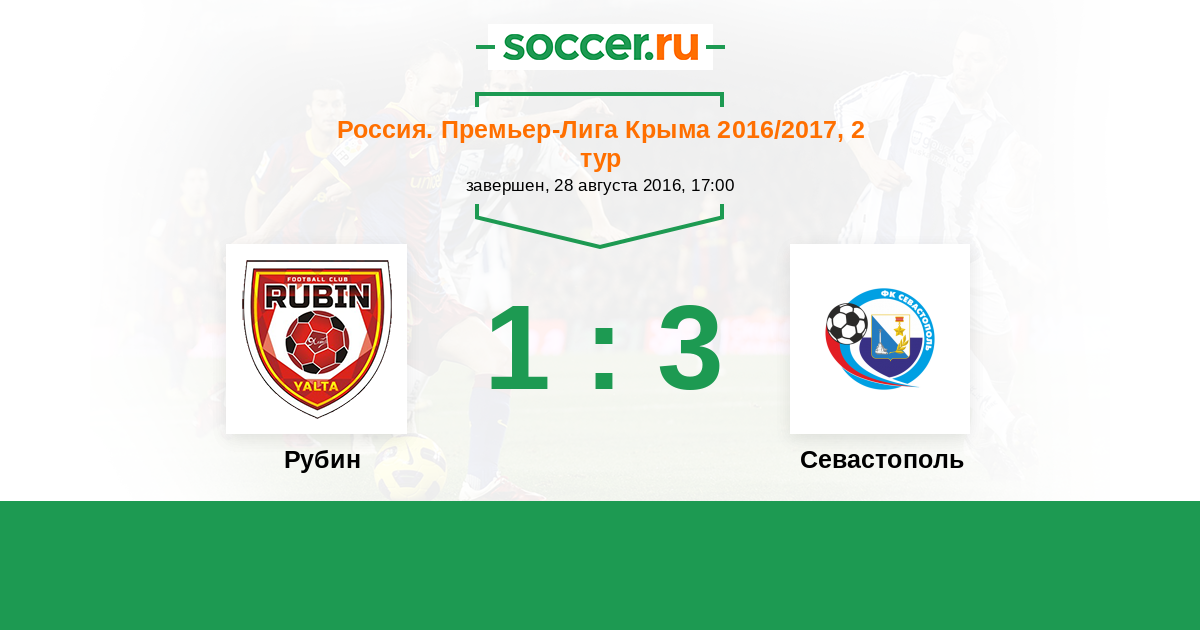 Россия. Премьер-Лига Крыма 20.08.2017 Севастополь Логотип футбольный клуб Севастополь 3:1 Логотип футбольный клуб Рубин (Ялта) Рубин