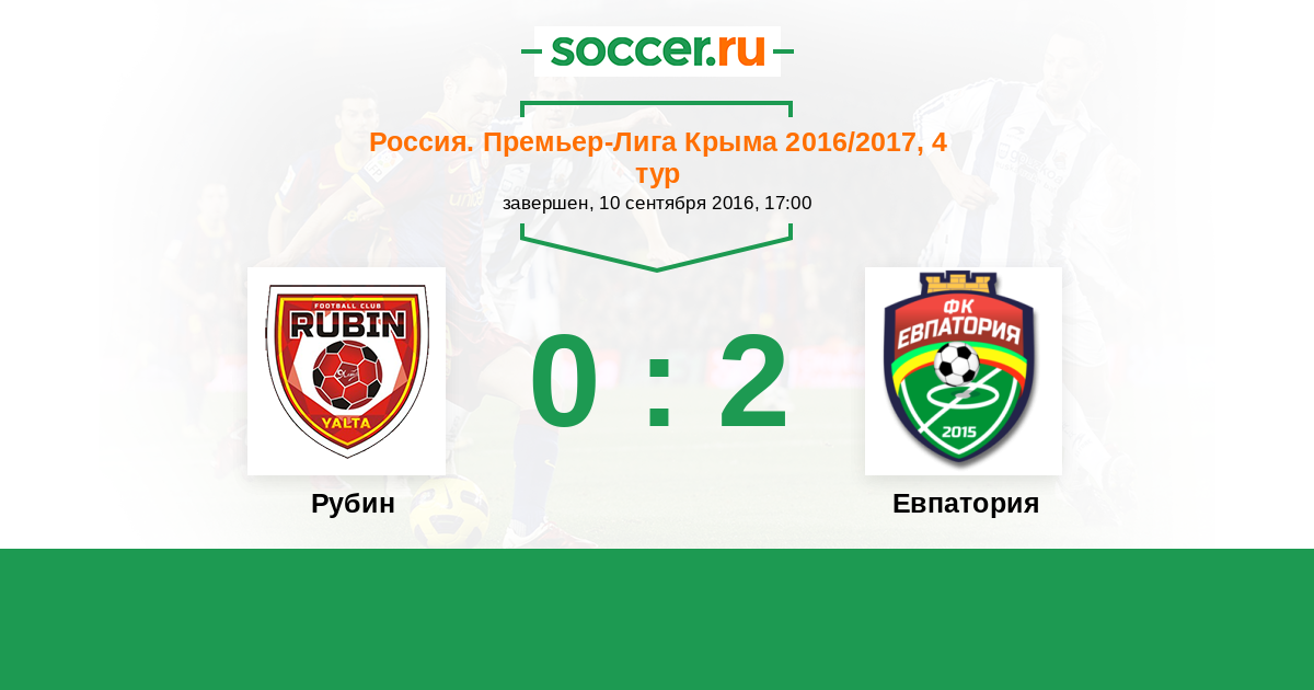 Россия. Премьер-Лига Крыма 30.10.2016 Евпатория Логотип футбольный клуб Евпатория 4:0 Логотип футбольный клуб Рубин (Ялта) Рубин