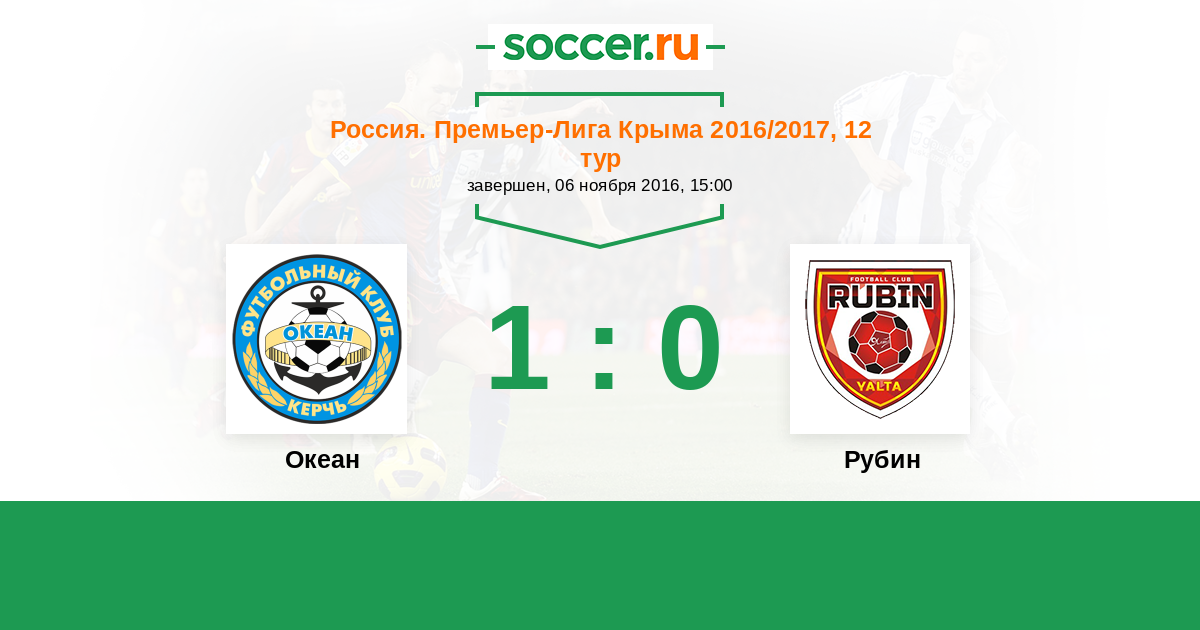 Россия. Премьер-Лига Крыма 22.10.2017 Рубин Логотип футбольный клуб Рубин (Ялта) 0:6 Логотип футбольный клуб Океан (Керчь) Океан