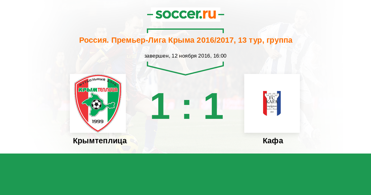 Россия. Премьер-Лига Крыма 17.04.2017 Кафа Логотип футбольный клуб Кафа (Феодосия) 1:1 Логотип футбольный клуб Крымтеплица (Молодежное) Крымтеплица