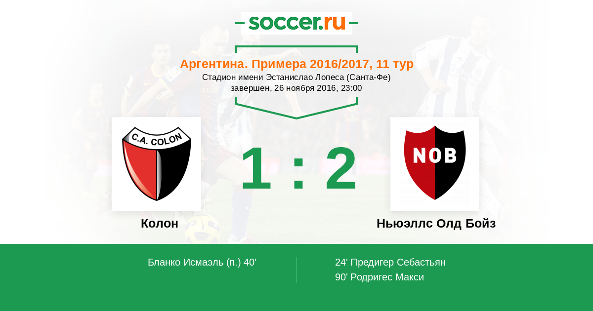 Аргентина. Суперлига 23.09.2012 Колон Логотип футбольный клуб Колон (Санте-Фе) 1:2 Логотип футбольный клуб Ньюэллс Олд Бойз (Росарио) Ньюэллс Олд Бойз