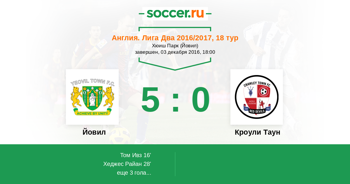 Кроули Таун 11:5 7:2 4:3