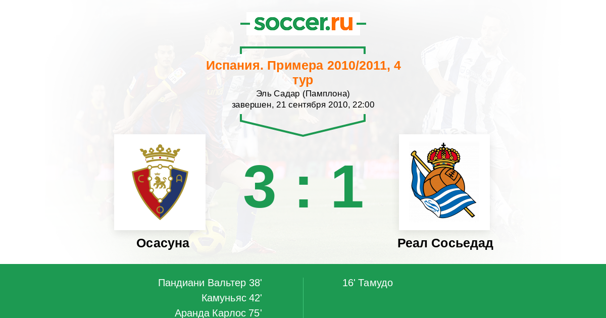 Испания. Примера 05.05.2012 Осасуна Логотип футбольный клуб Осасуна (Памплона) 1:0 Логотип футбольный клуб Реал Сосьедад (Сан-Себастьян) Реал Сосьедад
