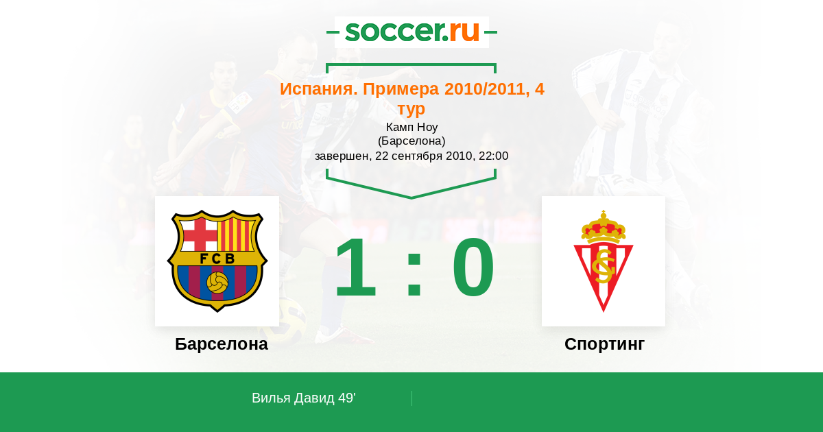 Испания. Примера 01.09.2009 Барселона Логотип футбольный клуб Барселона 3:0 Логотип футбольный клуб Спортинг (Хихон) Спортинг