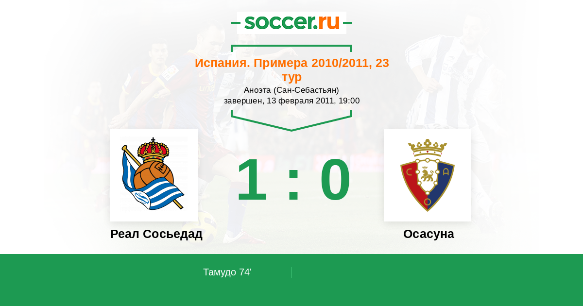 Испания. Примера 30.03.2014 Осасуна Логотип футбольный клуб Осасуна (Памплона) 1:1 Логотип футбольный клуб Реал Сосьедад (Сан-Себастьян) Реал Сосьедад