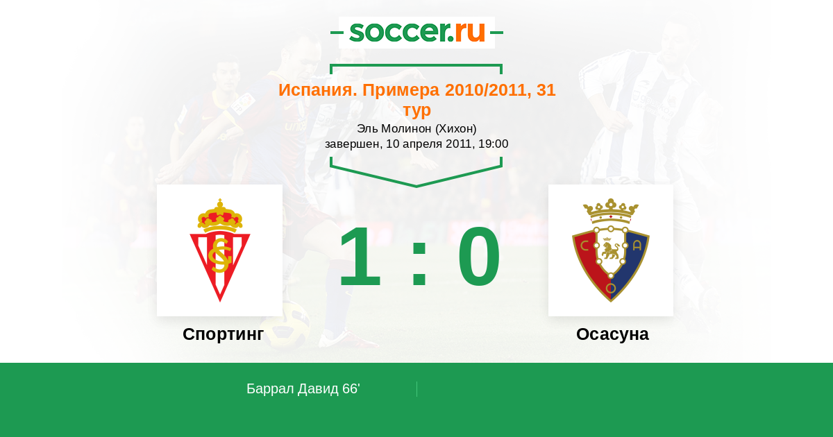 Испания. Примера 21.11.2010 Осасуна Логотип футбольный клуб Осасуна (Памплона) 1:0 Логотип футбольный клуб Спортинг (Хихон) Спортинг