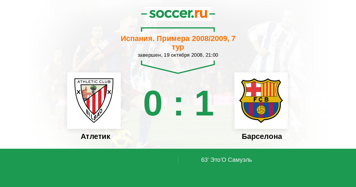 Испания. Примера 30.09.2006 Атлетик Логотип футбольный клуб Атлетик (Бильбао) 1:3 Логотип футбольный клуб Барселона Барселона