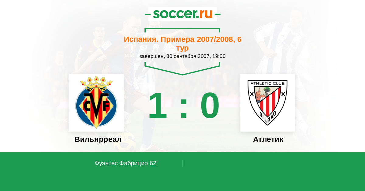 Испания. Примера 14.01.2007 Атлетик Логотип футбольный клуб Атлетик (Бильбао) 0:1 Логотип футбольный клуб Вильярреал Вильярреал