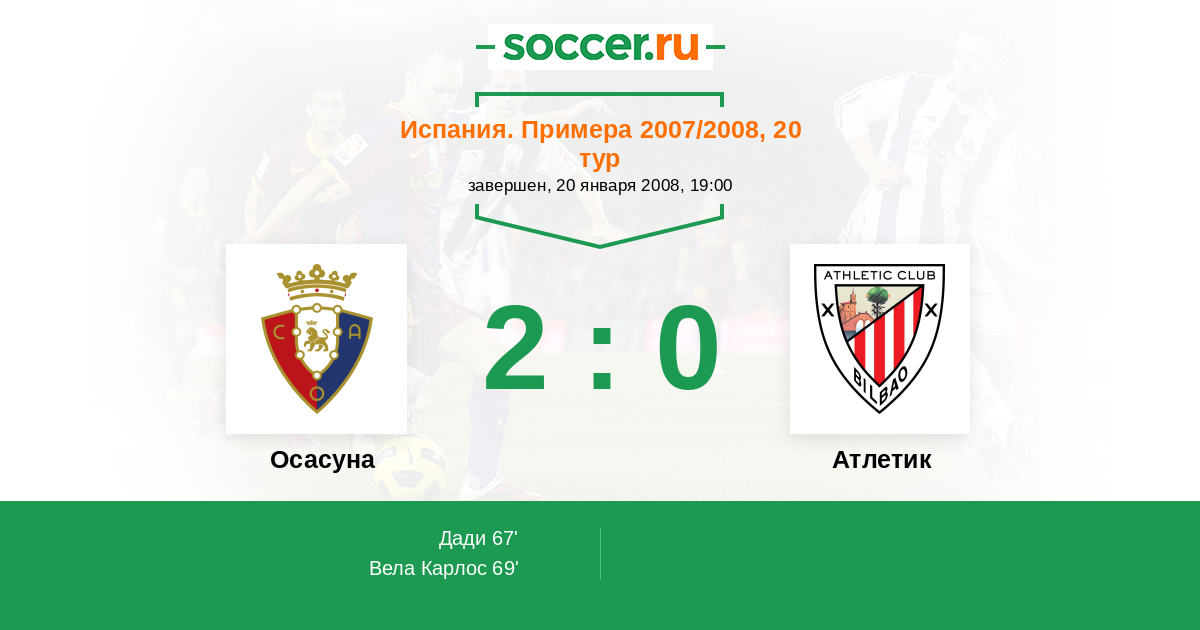 Испания. Примера 26.08.2007 Атлетик Логотип футбольный клуб Атлетик (Бильбао) 0:0 Логотип футбольный клуб Осасуна (Памплона) Осасуна