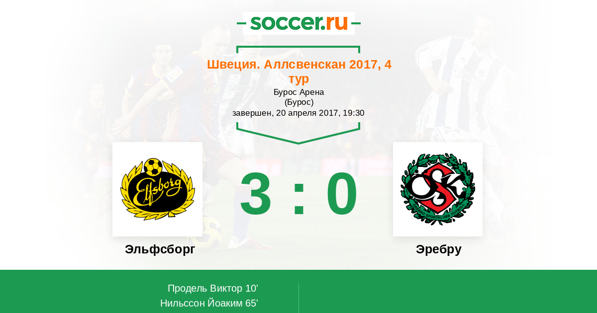 Швеция. Аллсвенскан 24.04.2019 Эльфсборг Логотип футбольный клуб Эльфсборг (Бурос) 4:2 Логотип футбольный клуб Эребру Эребру