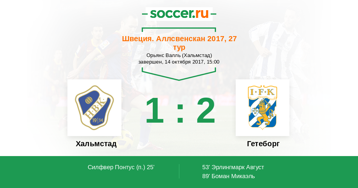 Швеция. Аллсвенскан 01.11.2014 Гетеборг Логотип футбольный клуб Гетеборг 5:1 Логотип футбольный клуб Хальмстад Хальмстад